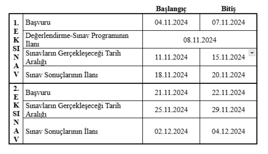- Ek Sınav Başvuru Formu için Tıklayınız.