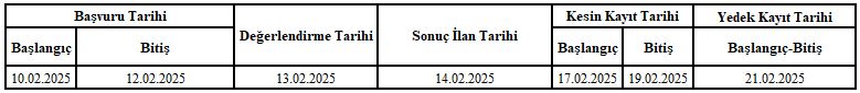2024-2025 Akademik Yılı Bahar Yarıyılı Çift Anadal Takvimi