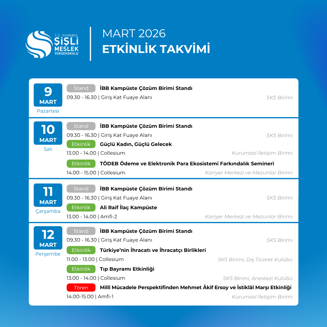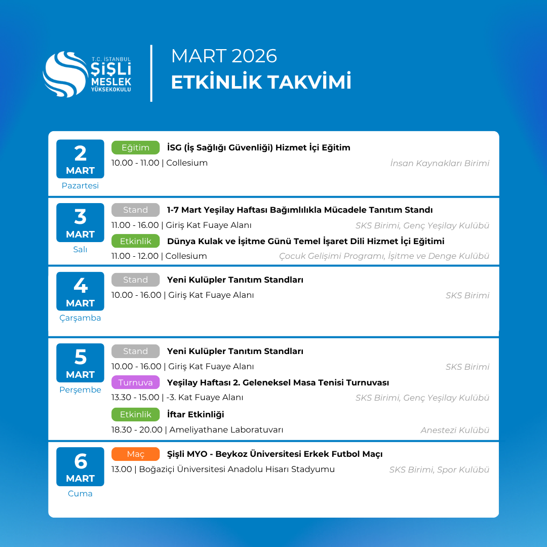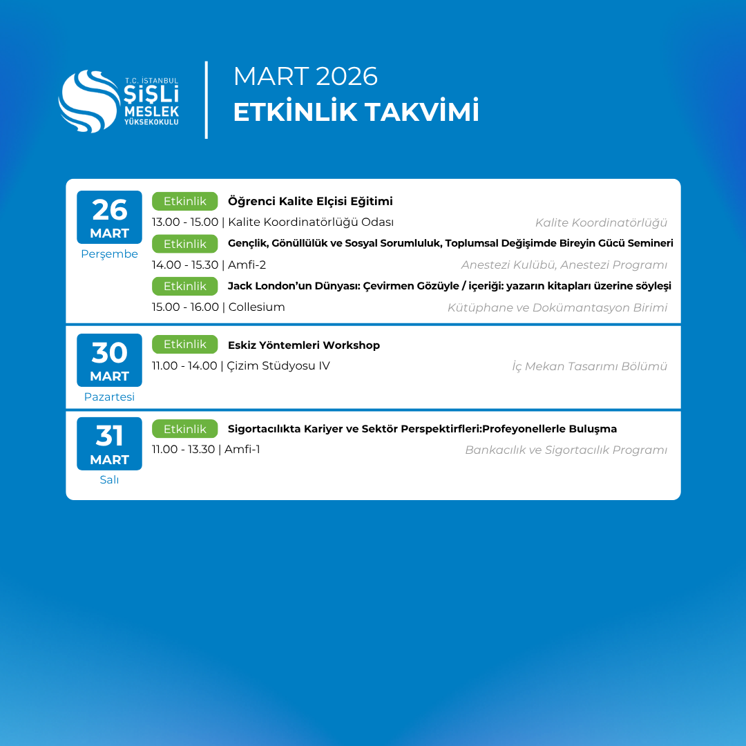 Yayınlanma Tarihi: 1 Mart - 00:00 End Yayınlanma Tarihi: 1 Mart + GOOGLE CALENDAR + ICAL IMPORT MORE DETAIL Related Events ‘Anestezi Teknikerliğinde Kariyer Yolculuğu’ Etkinliği 9 Mayıs 00:00 “Erasmus+ ile Yeni Kültürler Keşfet” Etkinliği 15 Ekim 00:00 “Karanlık Oda” Projesi ile Farkındalık Kazandık 22 Ekim 00:00
